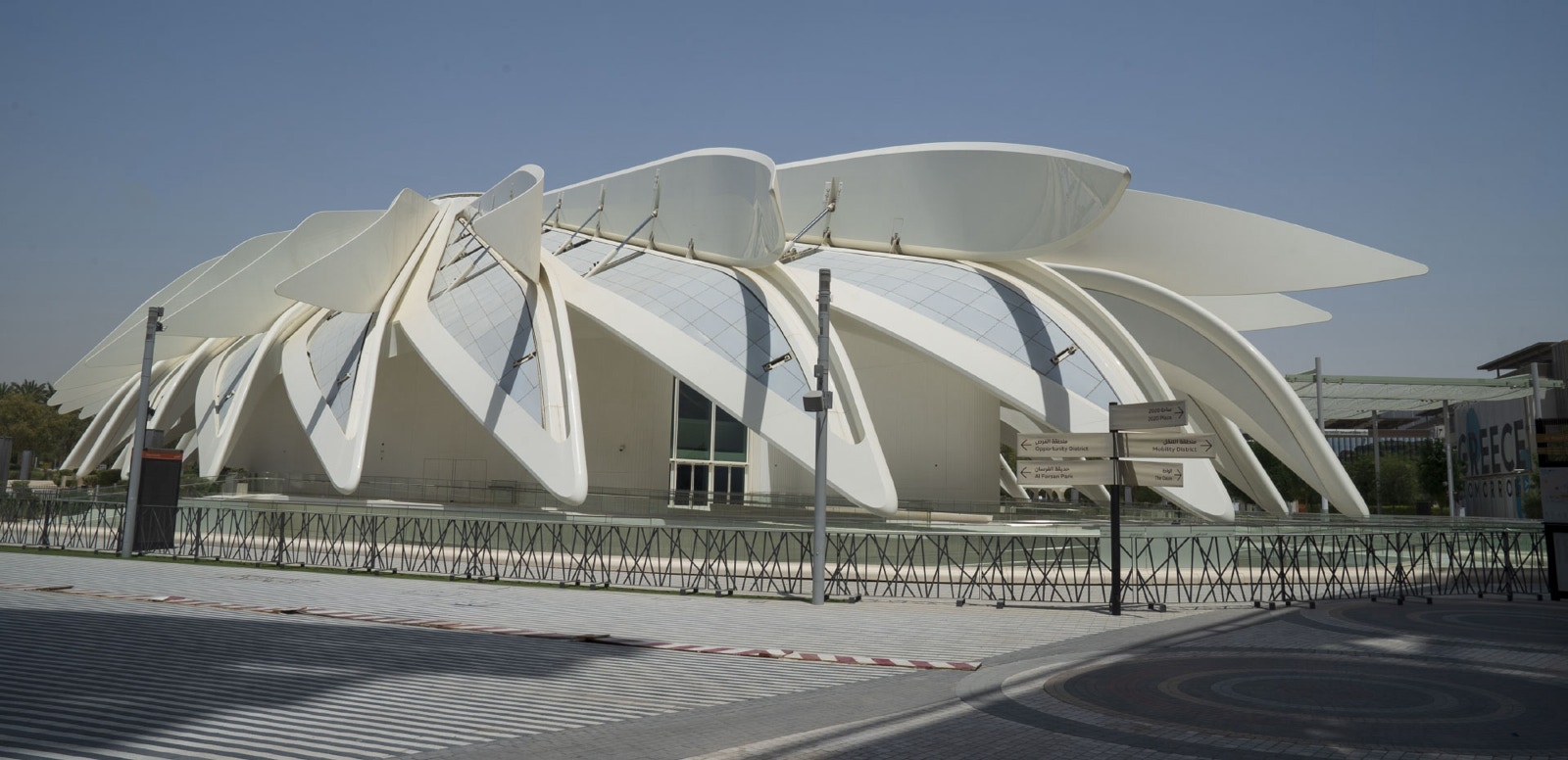 The UAE Pavilion at the EXPO 2020, a collaboration between the UAE Ministry of Culture and Youth and the Salama bint Hamdan al Nahyan Foundation, was designed by Spanish architect Santiago Calatrava evoking the image of a “falcon in flight.” The falcon reminds us of the UAE’s founding father, the late Sheikh Zayed bin Sultan Al Nahyan and how falconry created connections between tribes across the region. Following the Expo theme “Connecting Minds, Creating the Future,” the pavilion aims fostered the notion of global interconnectivity. The Pavilion also includes a special guest area at it’s centre. This contemporary majlis was designed by the UAE based architecture firm LOCI and highlights the traditional values of the UAE such as community, unity, humility and hospitality. The minimal design of the majlis encourages informal conversations, while creating a connection to the larger community space under the roof of the UAE Pavilion.