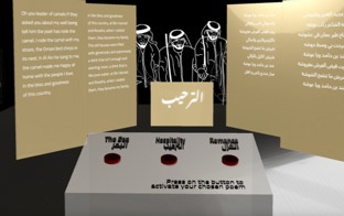 At the same time, the user will hear a reciting of the poem by Salem himself. Furthermore, rotoscoped videos that correspond to the poem will appear on room's walls in a 180-degree perspective. This will engage the audience in the experience while also educating them about the significance of poetry in Emirati Majlis.