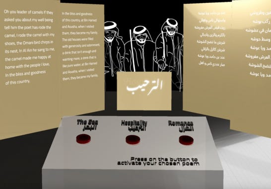 This website shares the results of students’ project works that resulted from the course »AR Stories on the Majlis« given by Prof. Zlatan Filipovic as part of the Junior Media-Design class at American University of Sharjah, UAE, in Spring 2022. The students have merged their individual research results into Augmented Reality experiments realized with the Adobe Aero tool.